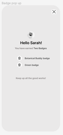 Users loved the idea of earning badges for taking care of their plants. They liked the gamification of taking care of plants, and being able to work towards a goal instead of just having a goal of keeping their plant alive. They liked that the badges were different colors to represent that all the badges they had earned were different.