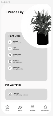 Users thought the Explore carousel looked very clean. They loved clicking on each plant and seeing a larger image of the plant, as well as all the recommended care that the plant would need.