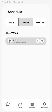 Schedule section shows the all the current and upcoming plant care tasks and User feels its very helpful how the schedule bar is categorized the tasks by Day, Week, and Month.
