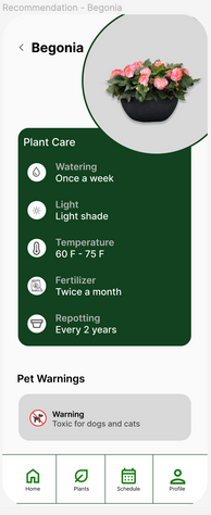 Pet safety shows warning to user if there is any conflict between theirs plant and pet safety. User think it’s really important to know for those who have both plants and pet.